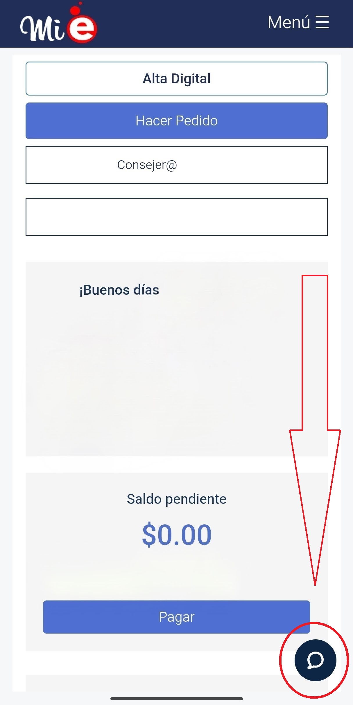 Dentro de tu sesión personal ubica el ícono señalado en la imagen para contactar a los ejecutivos de atención
